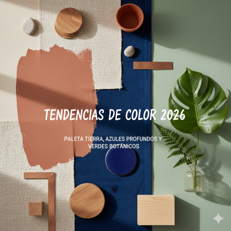 Tendencias de color 2026 en decoración: paleta tierra, azules profundos y verdes botánicos