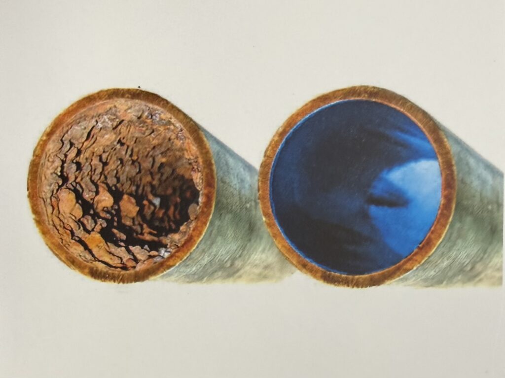 - Proyección del revestimiento: se proyecta una resina epoxi o poliuretano por el interior de la tubería, formando una capa continua e impermeable que encapsula la bajante sin manipular el amianto.